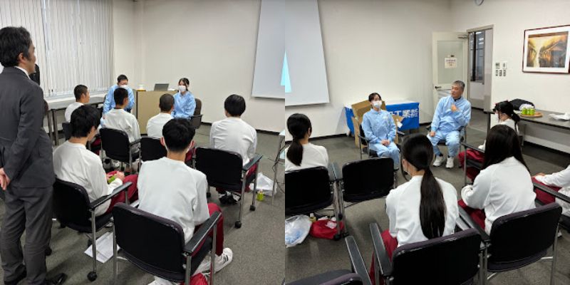 弊社の事業内容の紹介とともに、実際の製造現場をご覧いただく工場見学を実施いたしました。 生徒の皆様は、真剣な眼差しで見学され、積極的に質問をいただくなど、その熱心な姿に弊社社員も大変刺激を受け、大きな励みとなりました。